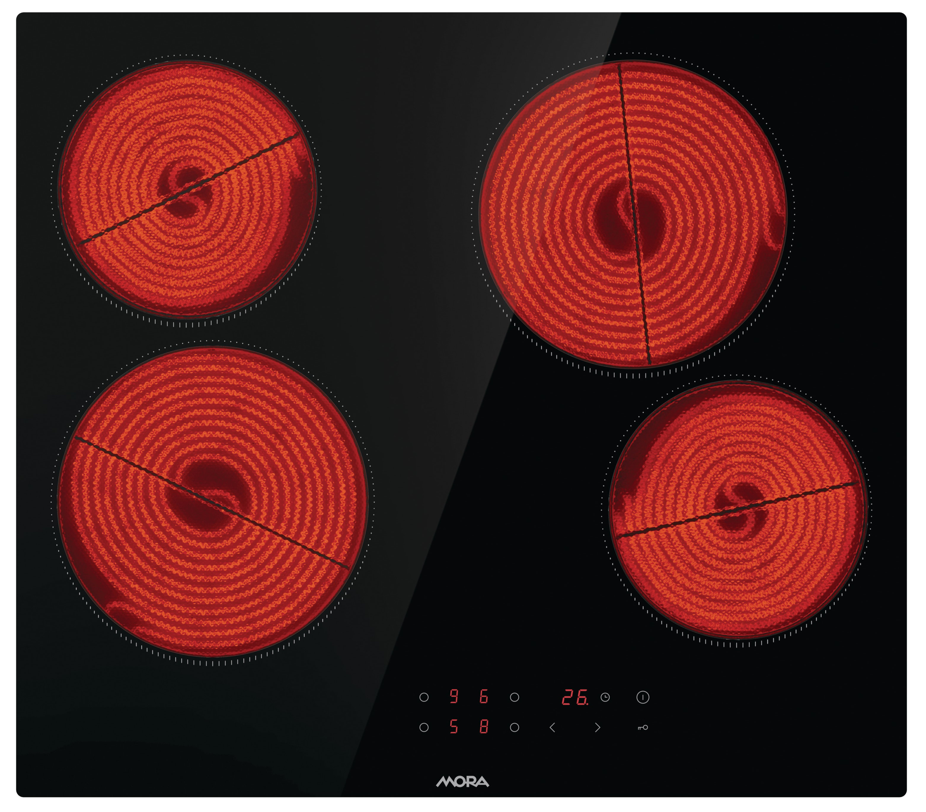 4 Hi-Light rychlé varné zóny sklokeramické desky MORA umožňují rychlé vaření v nádobí různých materiálů i velikostí. Vaše voda na těstoviny, ohřátí polévky či jakýkoliv pokrm zvládnete připravit na těchto zónách v krátkém čase a za stále efektivních podmínek provozu.