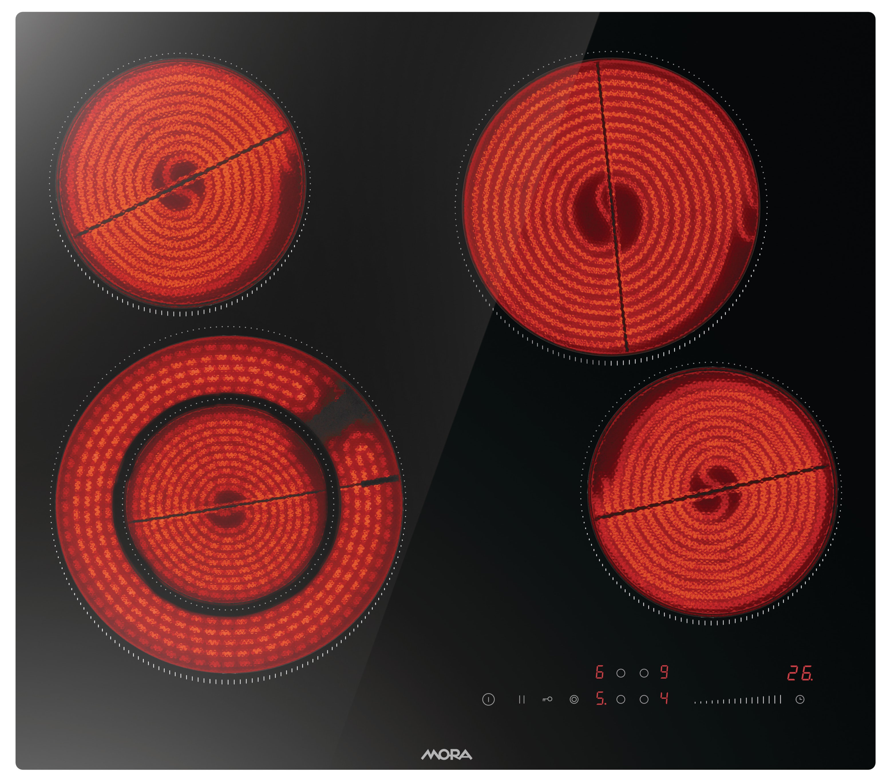 4 Hi-Light rychlé varné zóny sklokeramické desky MORA umožňují rychlé vaření v nádobí různých materiálů i velikostí. Vaše voda na těstoviny, ohřátí polévky či jakýkoliv pokrm zvládnete připravit na těchto zónách v krátkém čase a za stále efektivních podmínek provozu.