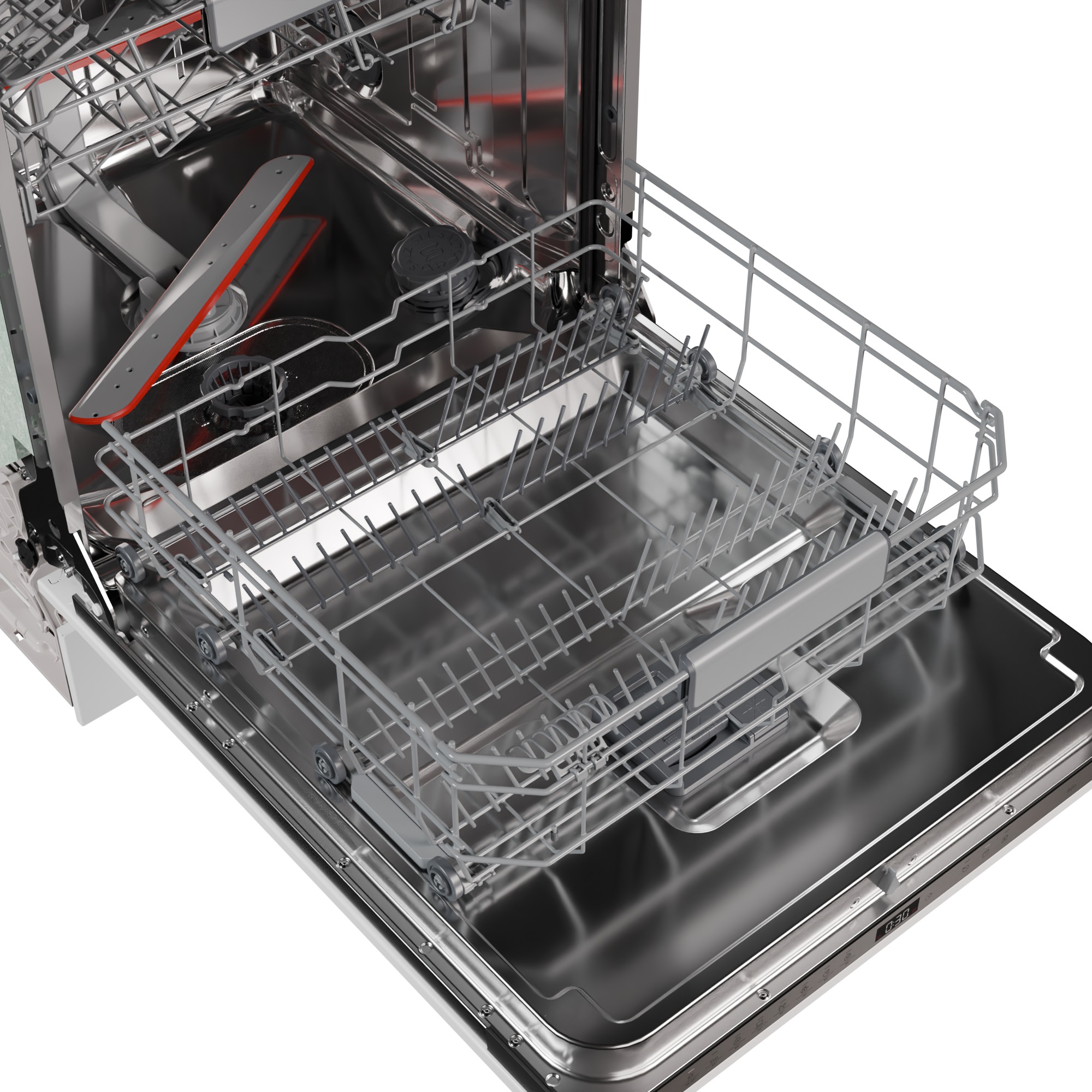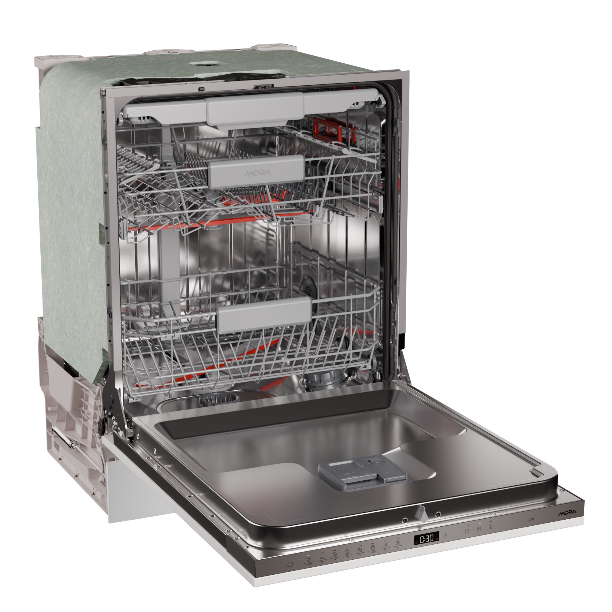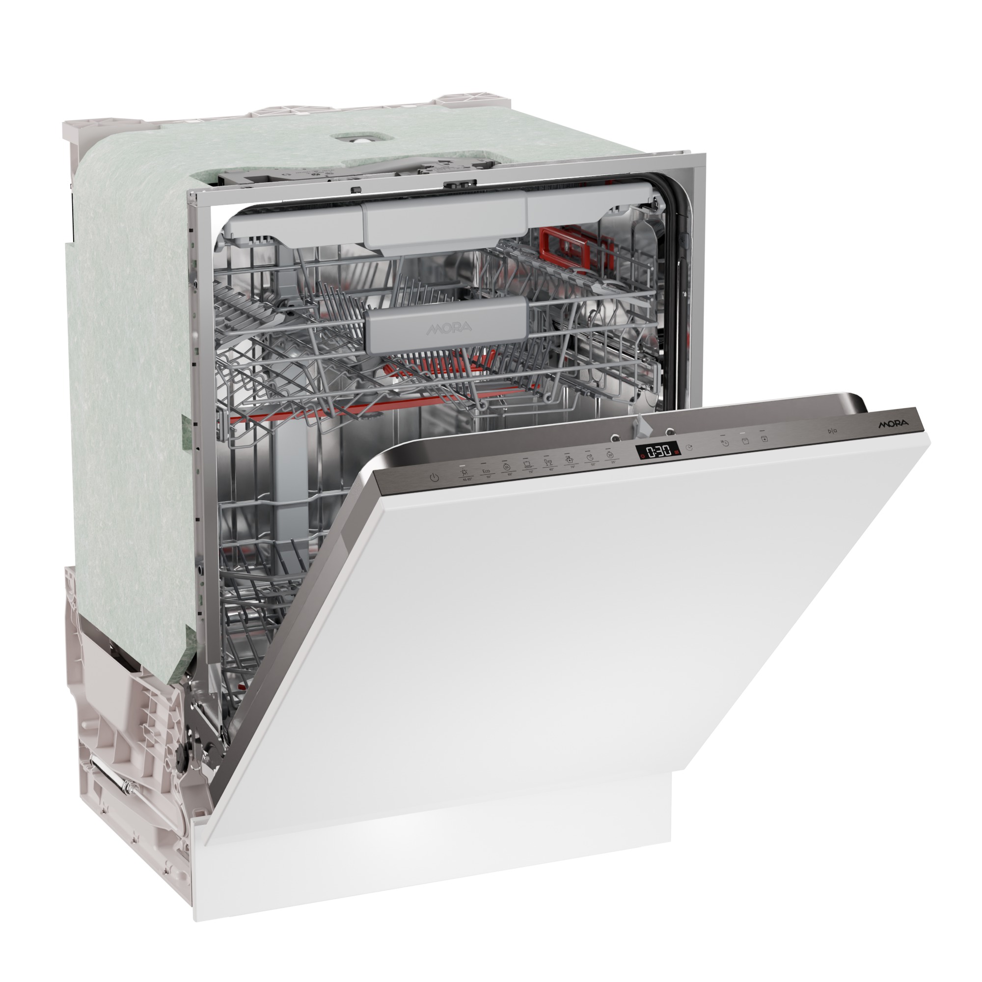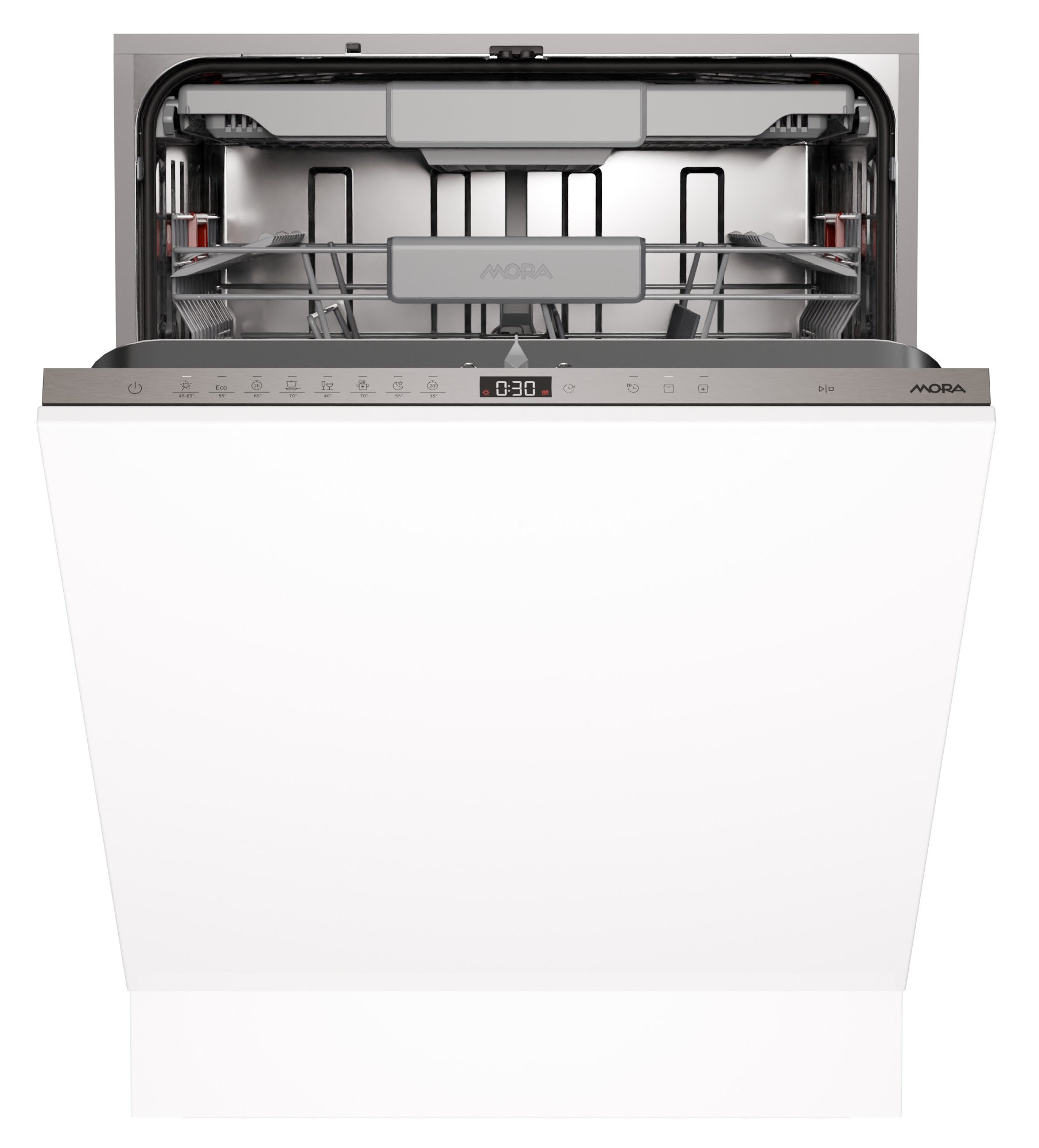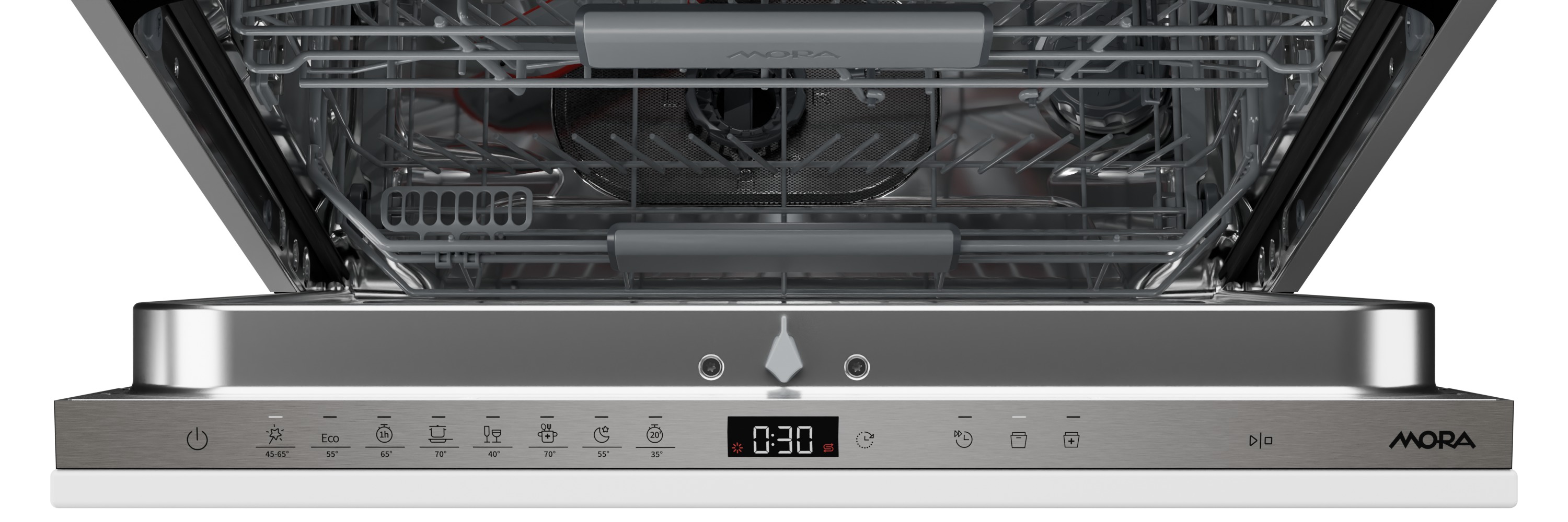 Vestavná plně integrovaná myčka MORA IMB 6678 v úsporné energetické třídě B si při standardní šířce 60 cm poradí s neuvěřitelnými 16 sadami nádobí. Nádobí dokonale umyje díky třem ostřikovacím ramenům a pěti výškovým úrovním proudu vody, takže bude bezvadně čisté, i když bude myčka opravdu plná a nádobí bude hustě naskládané. Je vybavená třemi koši s pohyblivými prvky a přizpůsobitelným nastavením. Vodící lišty v horním koši jsou navíc opatřeny kuličkovými ložisky. Horní koš slouží pro pečlivé a šetrné mytí příborů a kuchyňského náčiní, levý a pravý panel můžete posouvat podle toho, jak velký prostor v horním koši potřebujete. V horním a spodním koši najdete prostor i pro vyšší skleničky na víno. Speciální pryžový materiál je udrží v pevné poloze. Tyto držáky jsou flexibilní a dělitelné, s vyhrazeným prostorem pro různý počet sklenic, aby vyhovovaly vašim potřebám. Skrytý ovládací panel je opatřen dotykovým ovládáním s displejem a mnoha praktickými funkcemi, jako je například RychléMytí, které umožňuje zkrátit délku vybraných programů. Zvolíte-li funkci SušeníPlus, po ukončení programu se automaticky pootevřou dvířka, aby tak unikla pára a následný sušicí cyklus byl efektivnější a energeticky úsporný. Energii pomáhá šetřit i možnost připojení přímo na teplou vodu pomocí speciální hadice, odolávající vysokým teplotám. Samozřejmostí je úsporný ECO Program nebo AUTO Program, který sám zvolí optimální parametry mytí. Vhod přijde i odložený start až o 24 hodin. Myčka má navíc praktický samočisticí filtr, a tak automaticky odstraní zbytky mastnoty a jídla ve filtru a zamezí nesprávnému chodu spotřebiče. Se systémem AquaStop se nemusíte obávat nemilého překvapení v podobě vytopení. Myčka je osazená novým výkonným invertorovým motorem a je velmi tichá (39 dB). Dokonce se i sama vyčistí – stačí jednou za měsíc pustit automatický program čiťtění, který vyčistí vanu, ostřikovací ramena i trysky.