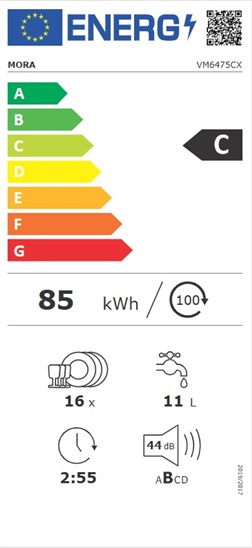 Vestavná myčka s panelem/kapacita myčky 16 sad nádobí/3 úložné koše/dotykové ovládání/funkce SušeníPlus/funkce RychléMytí/Odložený start (0-24 hod)/AUTO program/ECO program/1h mytí program/Total Aqua Stop/třída energetické účinnosti C/spotřeba vody 11 l/cyklus/hlučnost 44 dB(A) re 1 pW