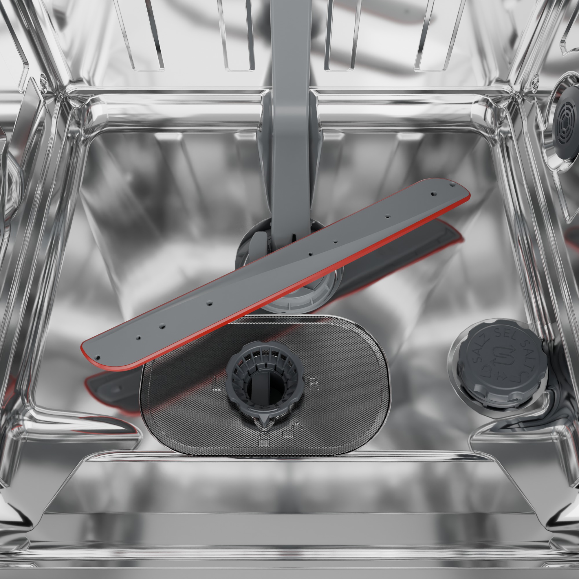 Jen čistá myčka může zajistit vynikající výsledky mytí. Spusťte samočisticí program jednou za měsíc, případně počkejte až vás na potřebu vyčištění upozorní myčka a už nikdy nebudete muset ručně čistit vanu, ostřikovací ramena ani trysky.