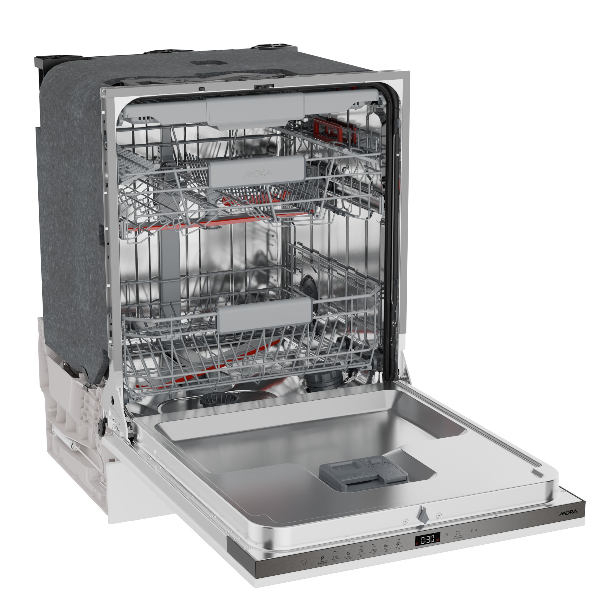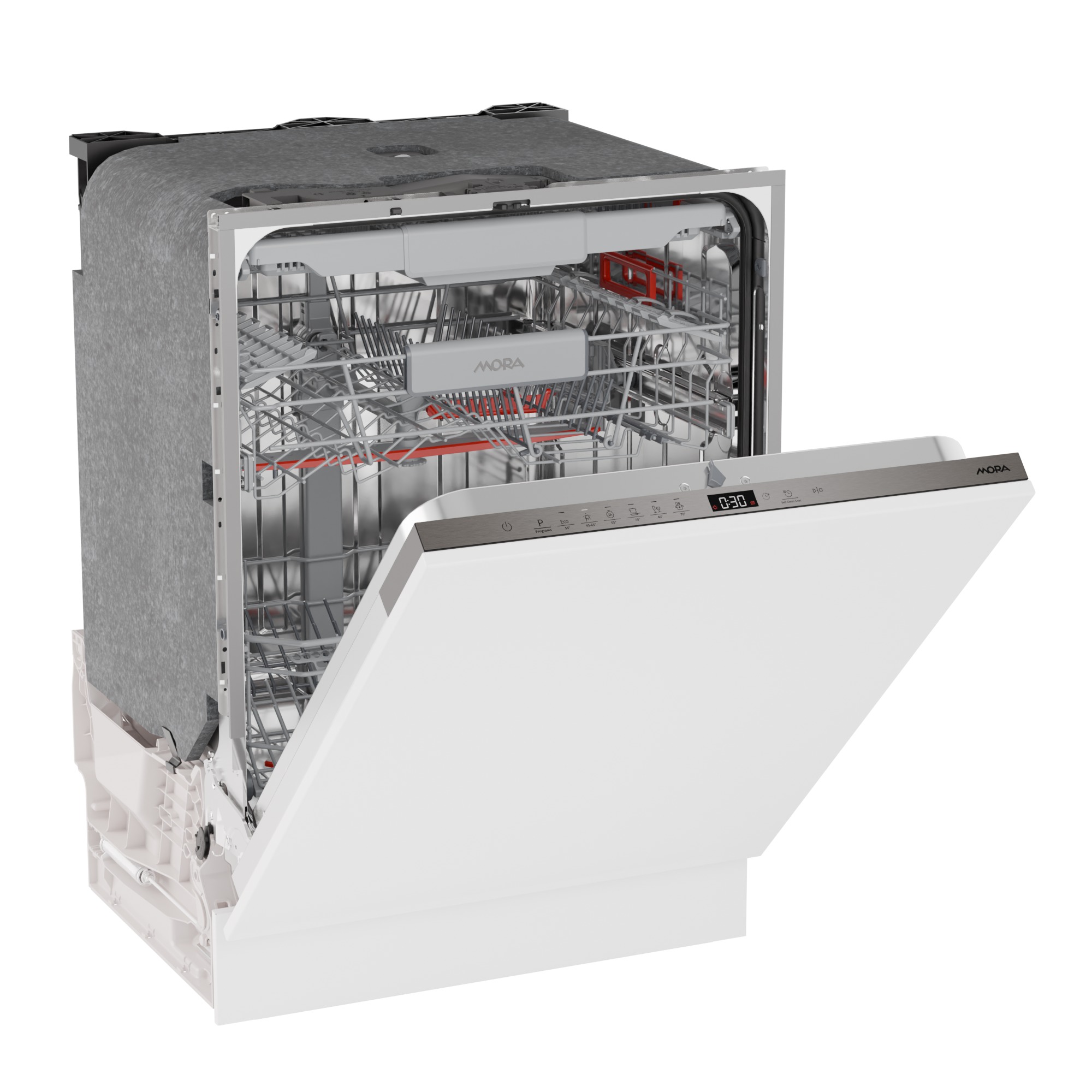 Vestavná plně integrovaná myčka MORA IM 647C6 v úsporné energetické třídě C si při standardní šířce 60 cm poradí s neuvěřitelnými 16 sadami nádobí. Nádobí dokonale umyje díky třem ostřikovacím ramenům a pěti výškovým úrovním proudu vody, takže bude bezvadně čisté, i když bude myčka opravdu plná a nádobí bude hustě naskládané. Je vybavená třemi koši s pohyblivými prvky a přizpůsobitelným nastavením. Vodící lišty v horním koši jsou navíc opatřeny kuličkovými ložisky. Horní koš slouží pro pečlivé a šetrné mytí příborů a kuchyňského náčiní, levý a pravý panel můžete posouvat podle toho, jak velký prostor v horním koši potřebujete. Skrytý ovládací panel je opatřen dotykovým ovládáním s displejem a mnoha praktickými funkcemi, jako je například RychléMytí, které umožňuje zkrátit délku vybraných programů. Zvolíte-li funkci SušeníPlus, po ukončení programu se automaticky pootevřou dvířka, aby tak unikla pára a následný sušicí cyklus byl efektivnější a energeticky úsporný. Energii pomáhá šetřit i možnost připojení přímo na teplou vodu pomocí speciální hadice, odolávající vysokým teplotám. Samozřejmostí je úsporný ECO Program nebo AUTO Program, který sám zvolí optimální parametry mytí. Vhod přijde i odložený start až o 24 hodin. Myčka má navíc praktický samočisticí filtr, a tak automaticky odstraní zbytky mastnoty a jídla ve filtru a zamezí nesprávnému chodu spotřebiče. Se systémem AquaStop se nemusíte obávat nemilého překvapení v podobě vytopení.