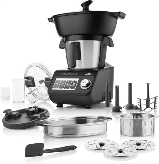 PŘÍKON: 1000 W (topné těleso), 600 W (mixování), Nerezová nádoba o objemu 3,5 l s možností mytí v myčce na nádobí, Dotykový TFT displej, Průběžná aktualizace vložených receptů přes WIFI, Zabudovaná váha, Plynulá regulace otáček v rozsahu 125-5000/min. a pulse, Nastavení teplot v rozsahu 37-130 °C, M