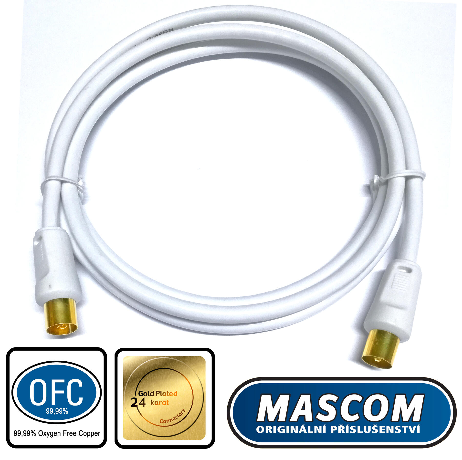 Účastnický televizní koaxiální kabel, délka 1,5m, pozlacené konektory, vhodný pro DVB-T2