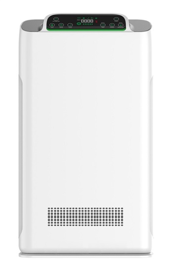 S ionizátorem a UV čištěním, CADR (objem vyčištěného vzduchu)–320 m3/h, PM 2.5 –odstraňuje částice o velikosti 2,5 mikronu s účinností 99,9 %, zobrazuje 3 úrovně znečištění vzduchu (PM 2,5) pomocí 3 barev, Možství nega iontů dosahuje 20 milionů na cm3