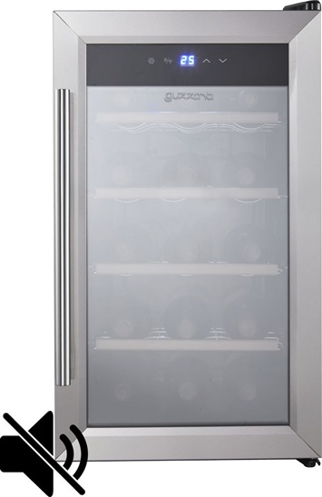 kapacita 15 láhví, 48l netto, energetická třída F, LED display + termostat s digitálním ukazatelem teploty, chladicí rozsah 10-18°C při okolní teplotě 25°C, bez kompresoru, bez CFC, Rozměry V x Š x H(cm): 63,5 x 36 x 55