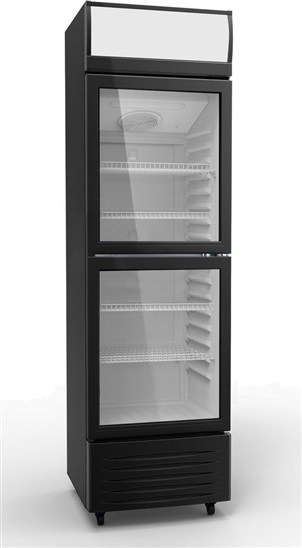 Objem netto 322 l; 4x polohovatelné police; ventilované chlazení; zabudovaný zámek a klíčky; nastavitelný termostat s rozsahem chlazení už od +2°C do +18°C; lakovaný hliník a černý rámeček kolem dveří z temperovaného skla; zadní i přední kolečka pro snadný přesun; spotřeba 2,00 kWh/24h.