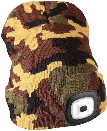 Čepice s čelovkou 180lm, nabíjecí, USB, univerzální velikost, bavlna/PE, maskáčová SIXTOL; pletená; LED světlo jde snadno vyjmout a čepici vyprat; dobíjí se přes USB; 3 režimy svícení; doba svícení: až 4 h; doba nabíjení: 2-3 h; materiál: 73 % bavlna / 27 % polyester