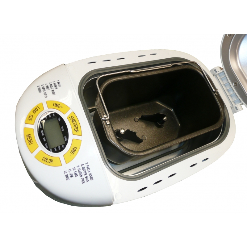 <p>Tento model pekárny je určen pro váhu pečeného chleba 0,75-1,25 kg. Uživatel má možnost si vybrat z 12 digitálních přednastavených programů a vše má možnost volit přes LCD displej. Je zde i funkce propečení kůrky. Pekárna má i program pro pečení bezlepkového chleba.</p>