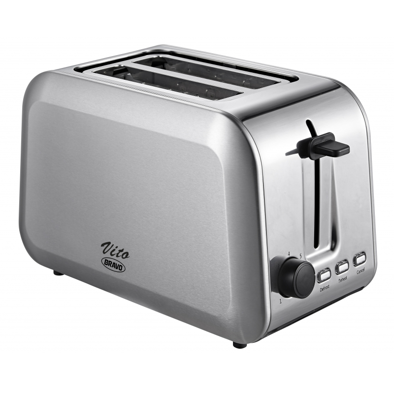 <p>Nerezový topinkovač Bravo B-4819 pro přípravu 2 kusů topinek. Je vybaven funkcí ohřevu, rozmrazování a STOP tlačítka.</p>