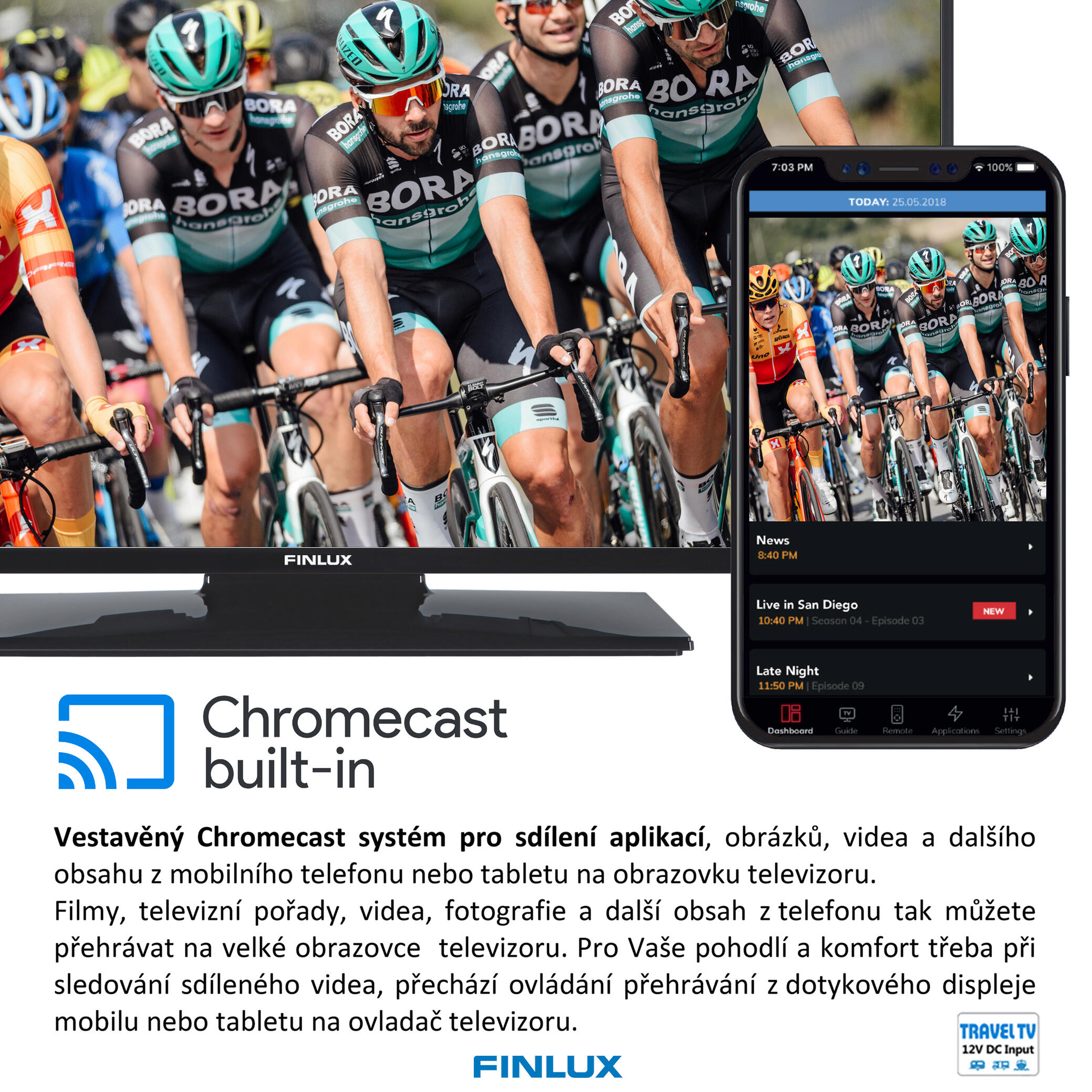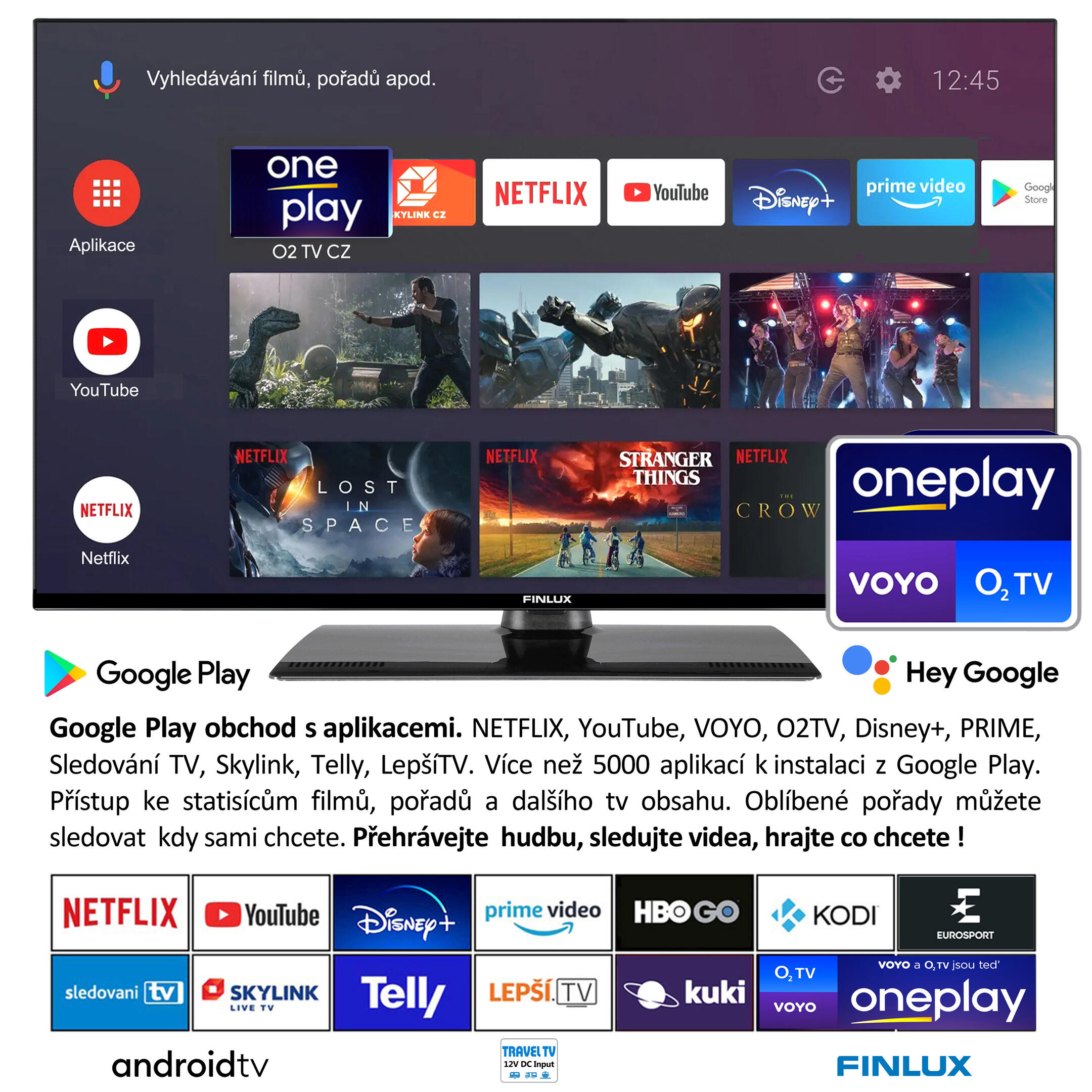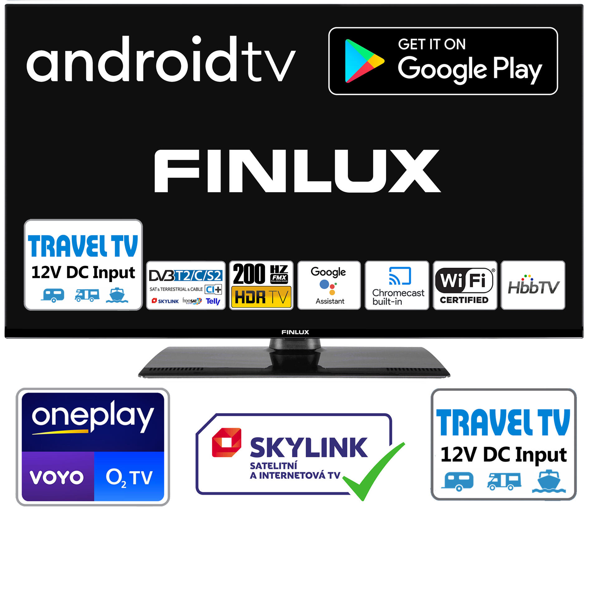 24"(61cm) 12V Travel TV, ANDROID TV11, SAT, DVB T2, HBBTV, SMART, WIFI, USB, SKYLINK LIVE, O2TV