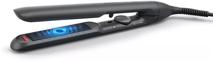 Žehlička Series 5000 s technologií ThermoShield, která chrání vlasy před poškozením teplem. Plovoucí keramické destičky (25 x 105 mm) napuštěné arganovým olejem. Ionizační technologie pro lesk vlasů.12 nastavení teploty (120 - 230 °C), nahřátí za 30 s, automatické vypnutí. Kabel 1,8 m. Pouzdro.