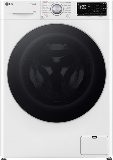 předem plněná parní pračka; energetická třída A; šířka 60 cm; až 10 kg prádla; maximální hlučnost 71 dB; 1400 ot/min; 14 programů; Steam™ parní praní; AI DD™ inteligentní systém praní; ezDispense™ automatické dávkování; ThinQ™ inteligentní funkce přes Wi-Fi; Rychlý program Bavlna Turbo; 85x60x56,5