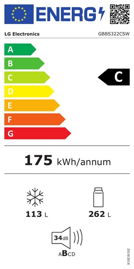 Kombinovaná chladnička; energetická třída C; objem chladničky 262 litrů; objem mrazničky 113 litrů; hlučnost 34 dB; klimatická třída T; AI Smart Invertorový kompresor (záruka 10 let); Fresh Balancer; Zásuvná police; Fresh Converter+; Door cooling+; Total No Frost; ThinQ™; 203x59,7x67,5